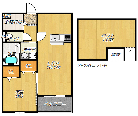間取り | 1LDK ロフト | 駐車場 | 10,800円/月 |