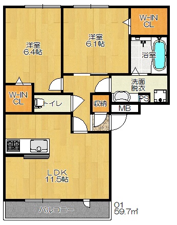 2LDK 59.7m² |