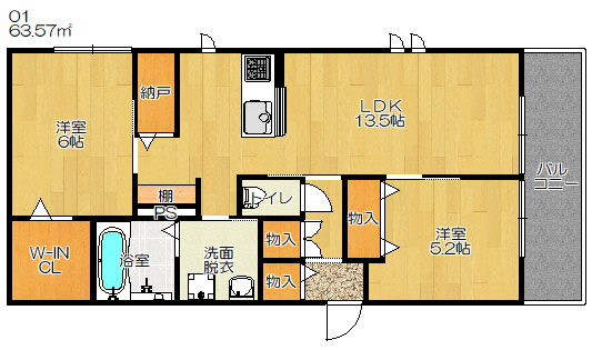 2LDK 63.57m² |